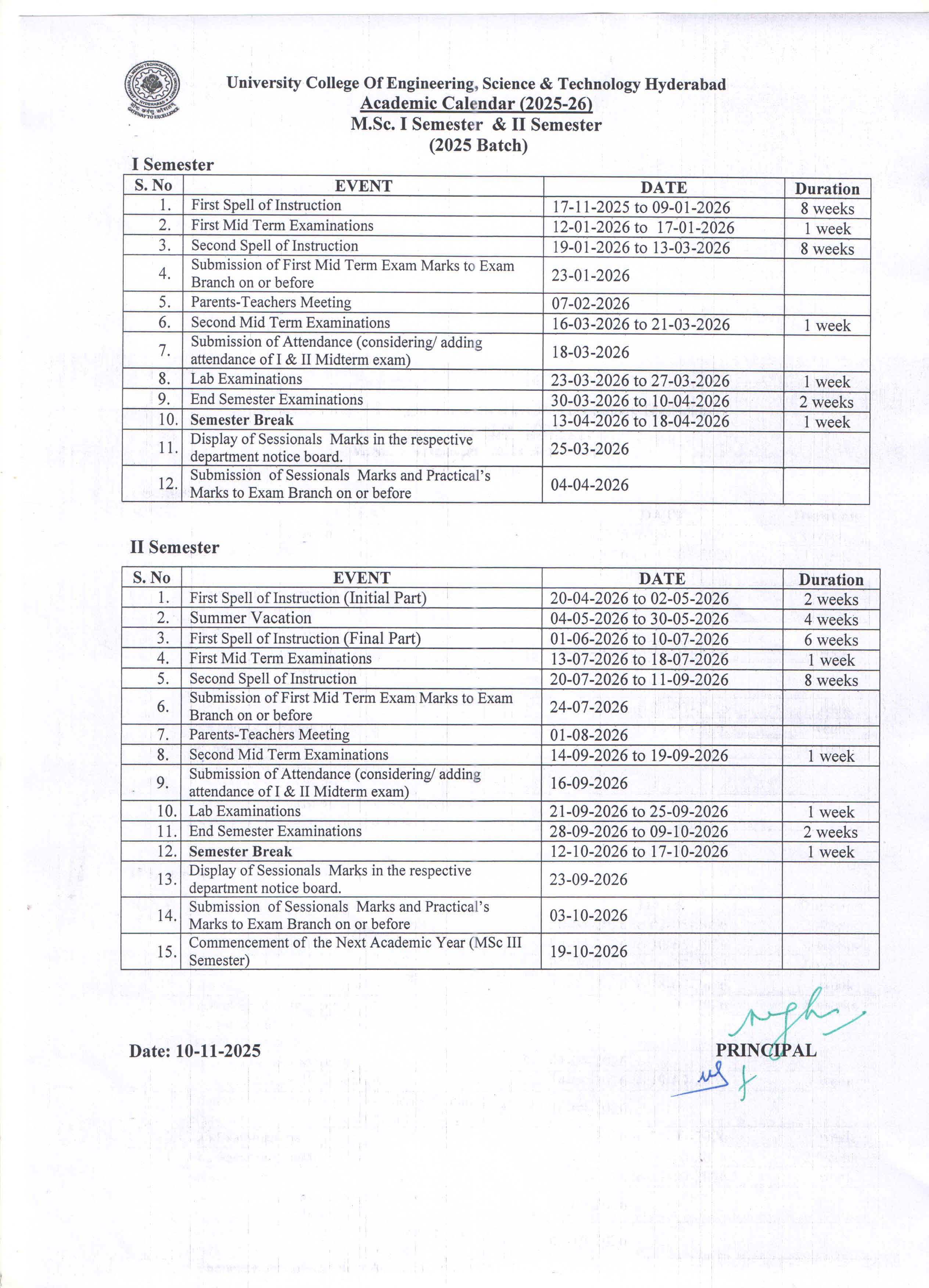 Academic Calendars-2025-26 for B.Tech. II,III,IV Year and IDP V Year